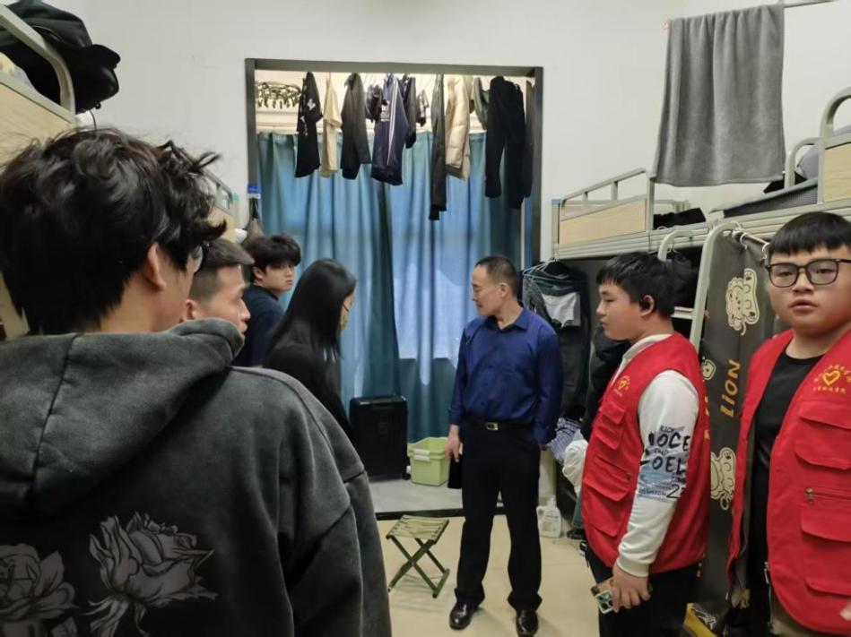 随后,学院领导与辅导员深入宿舍,与学生面对面交流,了解假期离校安排,着重强调安全注意事项。提醒学生离校前切断电源、妥善保管贵重物品,防范火灾及盗窃风险。针对假期可能遇到的突发状况,学院叮嘱学生保持通讯畅通,及时与辅导员或相关部门联系,增强学生安全意识与自我管理能力。