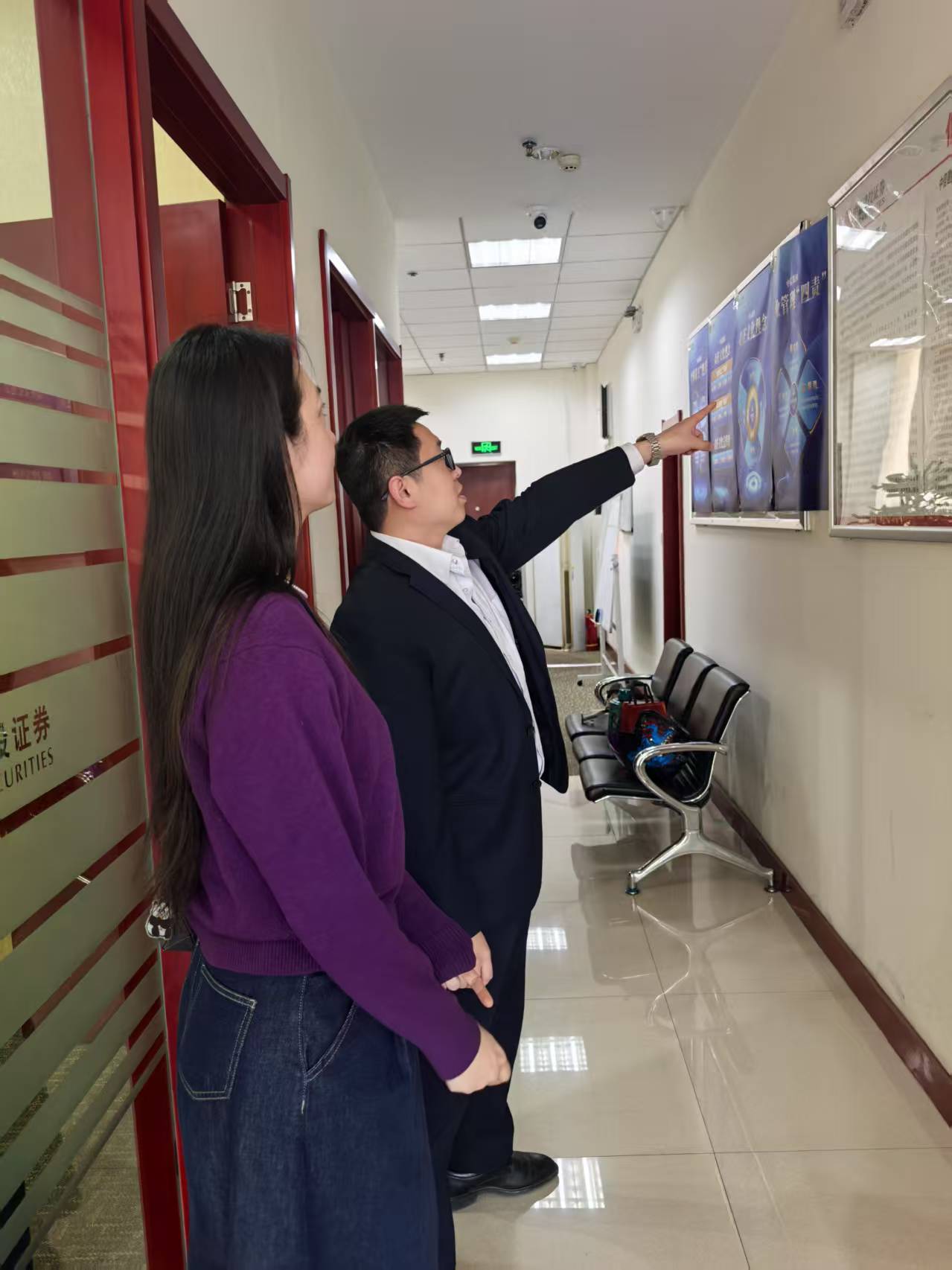 为了精准把握金融科技行业发展趋势,深度了解市场对专业人才的需求,进一步优化金融科技专业人才培养方案,4月6日下午金融科技专业教研室主任熊蕾蕾前往洛阳中信建投证券南昌路营业部进行走访交流。中信建投证券南昌路营业部的营销总监胡喆经理及相关业务骨干热情接待。