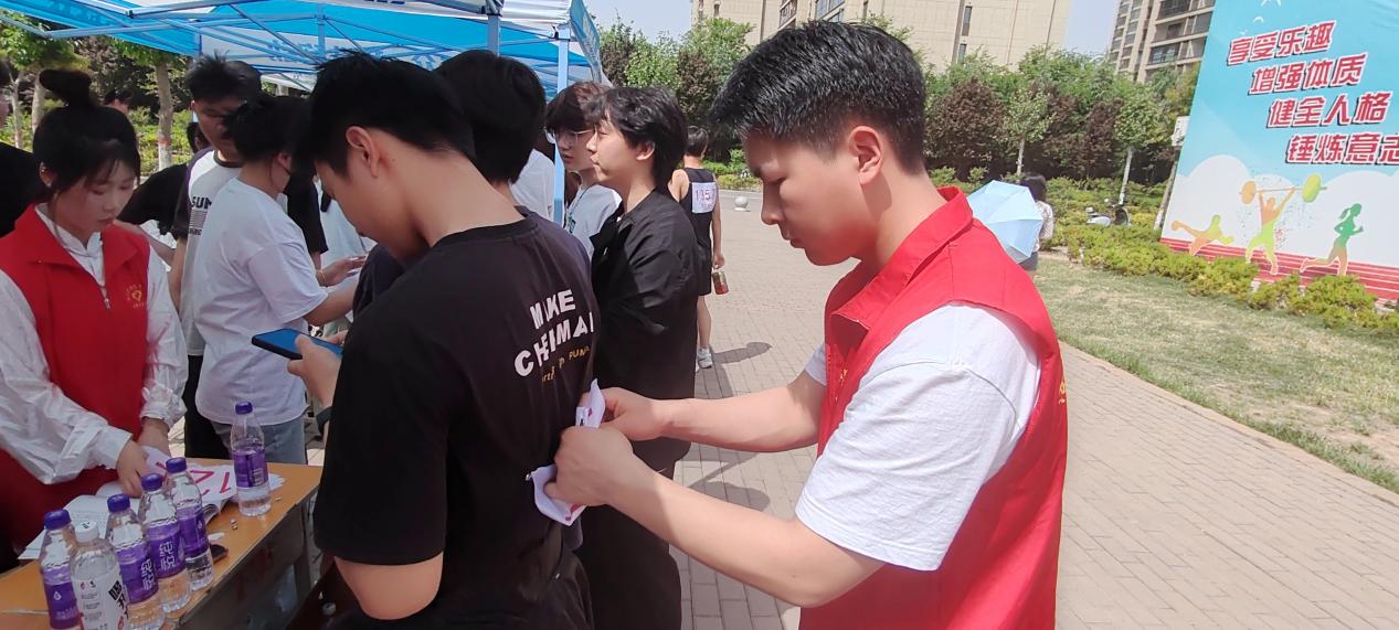 清晨七点,操场还笼罩在一片静谧之中,志愿者们便已集结完毕。为给师生提供优质服务,他们迅速投入准备工作,搭建帐篷、布置志愿服务站、搬运饮品,还细心筹备应急药品。开幕式结束后,志愿者们马不停蹄地忙碌起来:在检录处引导运动员有序入场;在看台间维持观赛秩序;选手比赛结束,立刻上前搀扶,他们以实际行动诠释担当,展现青年良好风貌,为赛事顺利进行保驾护航。
