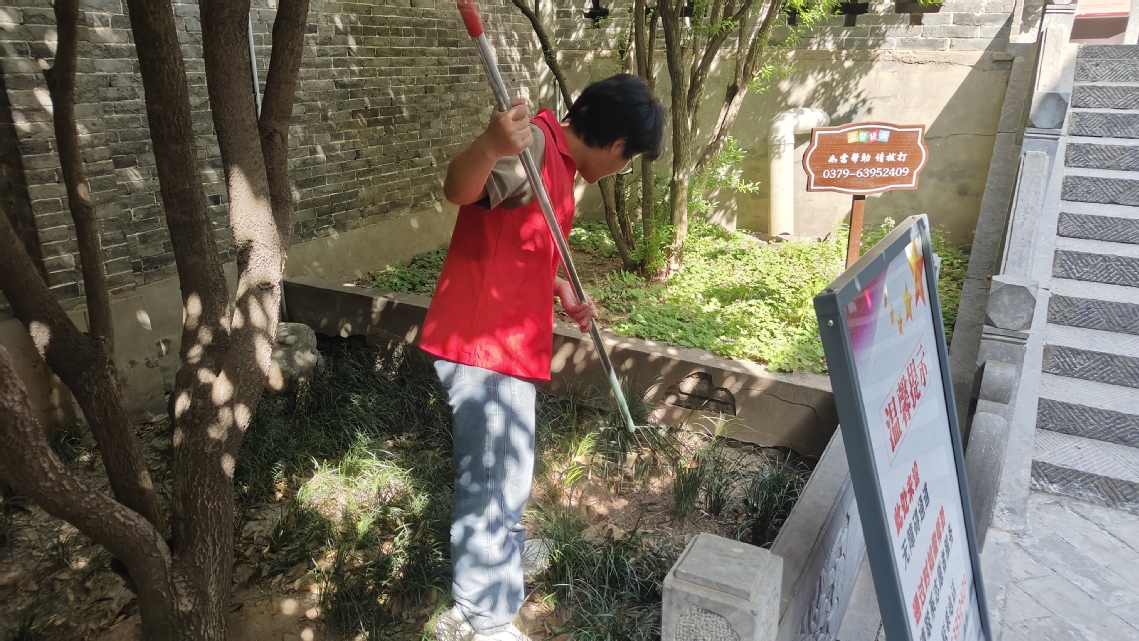 活动当日,参与活动的同学们准时抵达 “八路军驻洛办事处纪念馆”。在工作人员的安排下,大家迅速投入到志愿服务中。有的同学负责场馆引导,为前来参观的游客耐心指引路线、解答疑问;有的同学主动承担起卫生清洁工作,认真擦拭展柜、清扫地面,让场馆环境更加整洁美观;还有的同学协助整理展品资料,确保展览的有序陈列。同学们分工明确、干劲十足,用热情和汗水展现出新时代青年的奉献精神。