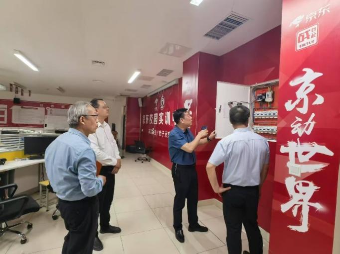 检查组一行先后走访学院京东校园实训中心、互联网金融实训室、大数据营销实训室、电子商务综合实训室、以及产业学院的实训室等18个实训室。