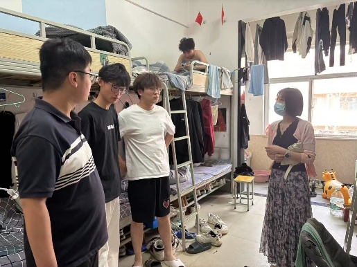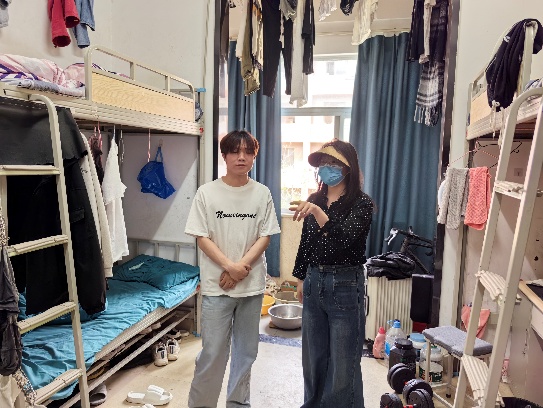 随后,学院领导和辅导员深入学生宿舍楼,重点检查宿舍内是否存在私拉乱接电线插座、违规使用大功率电器、存放易燃易爆及有毒有害物品、消防通道堵塞隐患等突出安全隐患。针对检查中发现的问题,检查组现场提出整改意见,督促学生立即落实,确保不留安全隐患。同时,房长显与同学们亲切交流,叮嘱假期离校学生务必在离校前做好卫生清理,切断所有电源、关闭门窗,彻底消除安全隐患,及时购买返程车票,按时平安返校;并提醒假期留校学生严格遵守宿舍管理规定,保持警惕意识,确保假期安全。