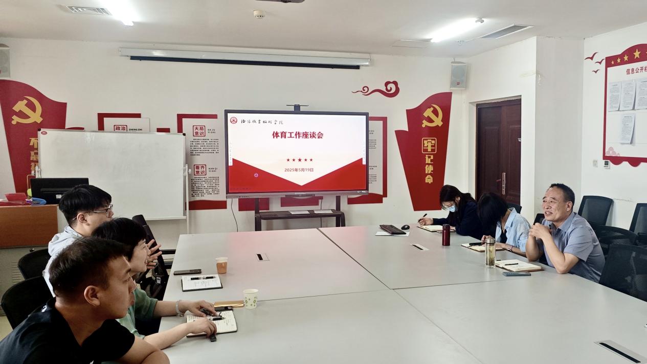 为充分发挥体育运动在大学生校园生活的作用,促学生全面发展,5月19日,电商物流学院与体育教学部在大学生活动中心403会议室联合召开体育工作师生座谈会。电商物流学院党总支书记房长显、体育教育部主任王莉,以及电商物流学院师生代表,体育教学部教师代表共同参加此次会议。