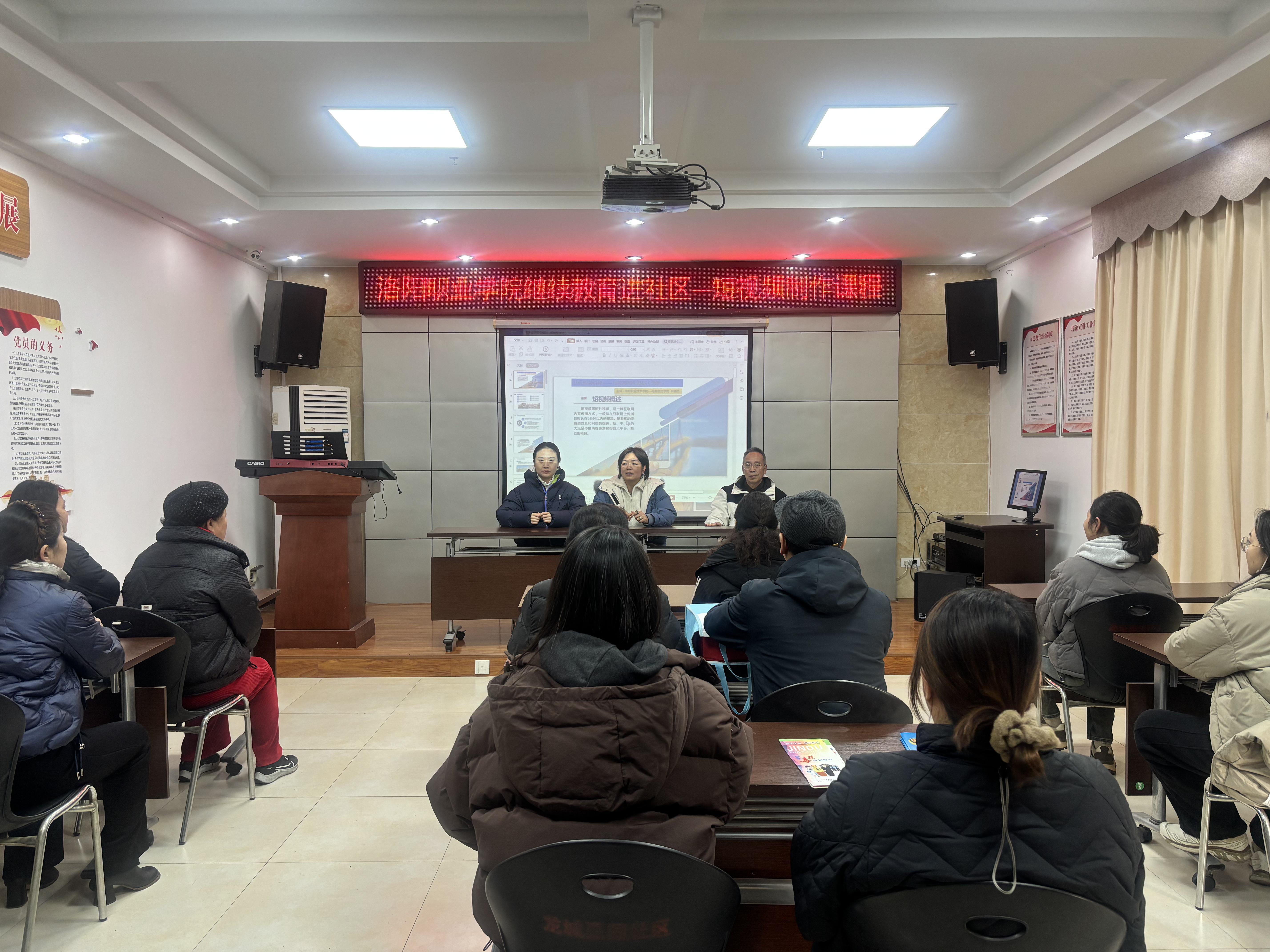 为深入践行职业教育服务全民终身学习的使命,充分发挥高校专业优势赋能基层民生,2025年12月23日,洛阳职业技术学院电商物流学院电子商务教研室主任刘昱彤带领教研室骨干教师尹燕杰、钟夏梦走进龙城嘉园社区,开展短视频制作技术公益培训活动,为社区居民送上实用的数字技能“大餐”。