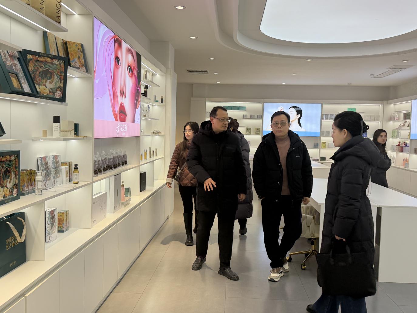 调研团队首先实地参观了中原美谷产业园区,详细了解了企业在美妆产业领域的创新成果与全链条布局。作为中部美妆产业崛起的新高地,中原美谷以 “科技 + 链条 + 服务” 为核心竞争力,已构建起涵盖原料供应、研发生产、包装设计、品牌运营的全闭环产业链。在科研创新方面,企业联合河南省科学院共建产业技术研究院,实现了从基础研究到产业应用的无缝衔接。调研团队对中原美谷在产业链聚合、技术创新及服务赋能等方面取得的成就表示高度认可,认为其产业布局与学院电商、物流、网络营销等专业方向具有极强的契合度。